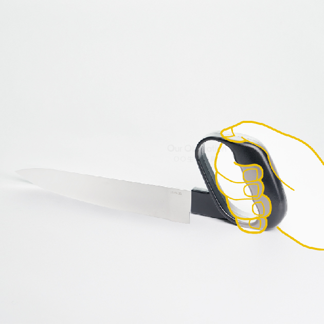 使用一般的刀子切食材時,手腕必需向下壓,對手腕的壓迫較大。