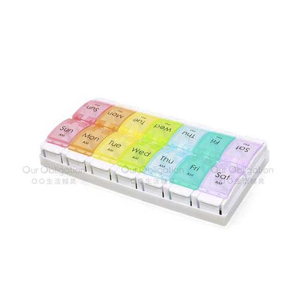藥盒上蓋透明設計,可以清楚辨識藥品種類,方便使用。