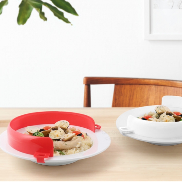 只要將餐盤框的三個掛勾至於圓盤上即可使用,操作簡單方便,容易拆卸清洗